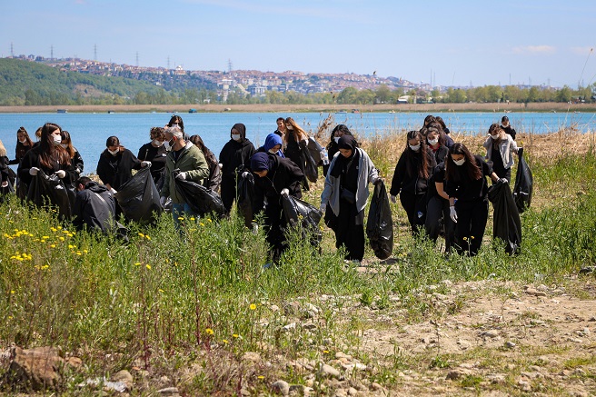 Öğrencileri, Uzunkum bölgesinde yürütülen temizlik çalışmalarına katılarak sürece destek