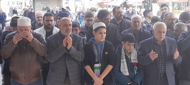 Bugün bir kez daha, işgalci siyonist İsrail’in ve kirli işbirlikçilerinin karşısında; şanlı Filistin direnişinin yanında olduğumuzu ilan ve ikaz etmek için toplanmış bulunmaktayız.