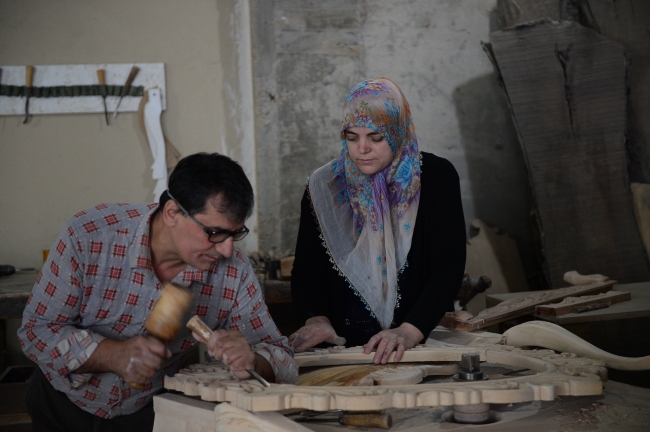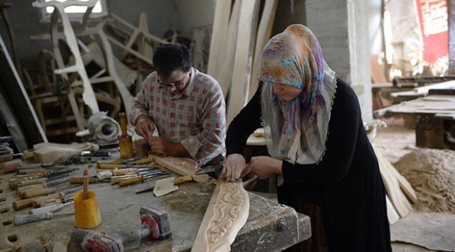 Ahşap oymacılığını eşinin yardımıyla yaşatmaya çalışıyor
