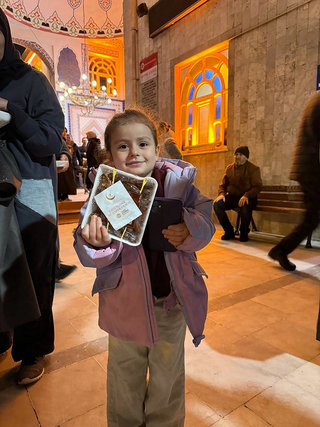 camide vatandaşlara hurma ikramında bulunarak geceye anlam kattı.