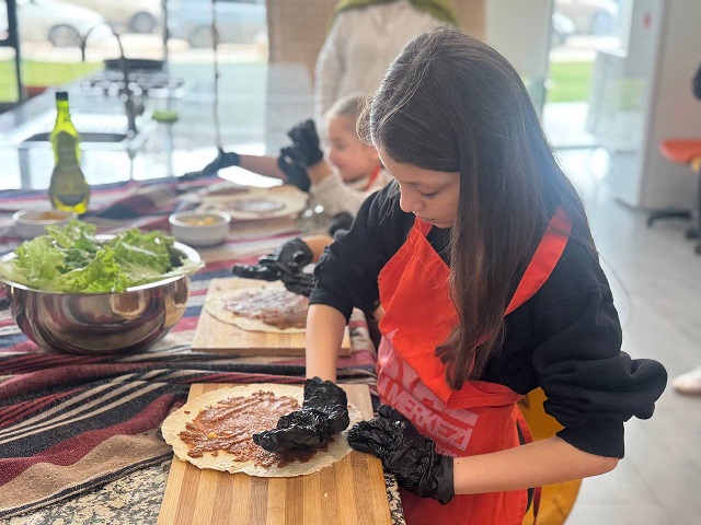 ‘Yoğur Yoğur Çiğ Köfte’ etkinliğinde çocuklar çiğ köfte yoğurarak yöresel lezzetleri