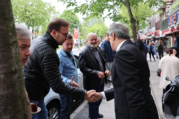 birlikte dışarı çıkan vatandaşlar ve esnaflarla geçmiş olsun dileklerini paylaştı.