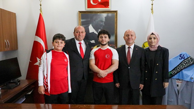 şampiyonluklarla adından söz ettiren Ferizlili genç sporcu İsmail Hacı Bekar’ı ve ailesini makamında
