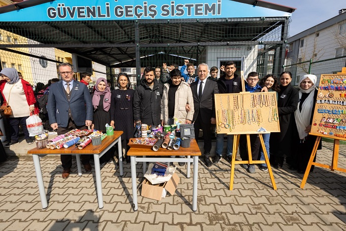 Başkan Babaoğlu program sonunda okulun bahçesinde öğrenciler tarafından açılan sergiyi de ziyaret