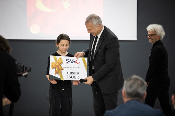 Şiir yarışması birincisi Hande Soylu ile mektup yarışması birincisi Hümeyra Sare Hopa’ya ödülleri