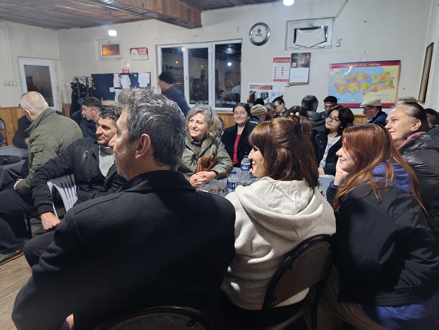 Didem Baran, “Bilindiği üzere Bozcaarmut köyünde bir altın madeni projesi gündemde şu anda. Her kafadan bir ses çıkıyor. Yani köylüler biz genel olarak istemiyoruz ama bilgi sahibi olmadan fikir sahibi olunmaz. Neden istenmiyor? Yani gerçekten altına ihtiyaç var. Ekonomik olarak faydalı ama diğer taraftan da çevresel etkileri kötü mü iyi mi? Şimdi bir sürü şey dolaşıyor. Kent konseyinden, çevre komisyonundan çok değerli çevre bilimci hocalarımız geldiler benim uzmanlık alanım değil. Ben kendim mimarım ama hani bayramda ne yapabiliriz diye düşündük. En azından temanın çok basit bir, maden faaliyetleri ile ilgili, çevreye nasıl etkileri olduğuyla ilgili ufak bir belgeseli var. Şimdi bunu herkes evinden izleyebilir ama netice itibariyle hani kimse de buna vakit ayırıp izleyeyim demez. Yine BBC’nin BBC Türkiye’nin altın madenciliği ile hazırladığı 14-15 dakikalık bir şey var  çok kısa yani bunlar çok fazla vaktinizi alacak şeyler değil. En azından fikir sahibi olabilmek için bilgi sahibi olabilmek adına bunları birlikte izleyelim istedik. Yani hepimiz bu bölgenin insanıyız. Karşı duruyoruz. Hani çevresel etkileri açısından korkularımız var. Süreç şeffaf yürümüyor. Birtakım önceki altın madenleri ile ilgili karşılaşılan olumsuz örnekler var. Hepimizin çekinceleri var. Ama nihayetinde eğer bilgi sahibi olursak neyi neden istemediğimizi anlatabilirsek belki elimizden geleni yapmış olacağız. Yani bir sonuca ulaşır mı, ulaşmaz mı bilmiyoruz ama biz vatandaş olarak bu bölgenin insanı olarak elimizden geleni yapmış olacağız sadece. Ben açıkçası bu köye bir borcum olarak görüyorum bunu.  Ben Kınıklıyım hepimizin de bu toprakları sevdiğinizi düşünüyorum. Çünkü bayramda, tatilde hepimiz buradayız bir şekilde koşup geldiğimiz yer burası. Şehirden koşup geldiğimiz yer. Çocuklarımıza bırakmak istediğimiz yer burası. Belki öldüğümüzde gömüleceğimiz topraklar burası Kınık Köyü için çok daha önemli. Çünkü direkt bu topraktan ürünler elde edip onları satıyor. Bu toprakların kirlenmesinin Kılık köyü için başkaca da bir anlamı var. Bunun da olmasını istemiyoruz. Sarıdayıda da sondajla ilgili çalışmalar sürüyor. şu anda durum bu. daha çevresel etki değerlendirme raporu alınmış değil ama süreci de bilmiyoruz. Yani bununla ilgili çed gerekli değildir başvurusunda bulunuldu ancak bunun sonucu ne çıkacak bilemiyoruz. İşte bir bayram akşamı bir çağırıyoruz herkes geliyor birlikte oturuyoruz yani burası bir kültür mozaiği. Kınıık köyü çok değerli bir köy. Yani bizim böyle değerlerimiz varken hani bunları biraz daha ön plana çıkartmak. Evet Altın da değerli. Evet. Ekonomi açısından gerekebilir ama neye rağmen? Yani neye ne pahasına, sondajlar için  ağaç kesim aşamasındayız maalesef” diye konuştu.