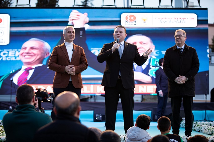 Hendek Belediye Başkanı ve Cumhur İttifakı Adayı Turgut Babaoğlu, belediye otopark alanında ‘Büyük