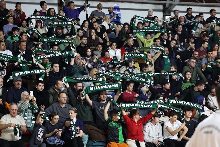 gösterdiği karşılaşmada salonu dolduran taraftarlar, maç boyunca takımlarına büyük destek