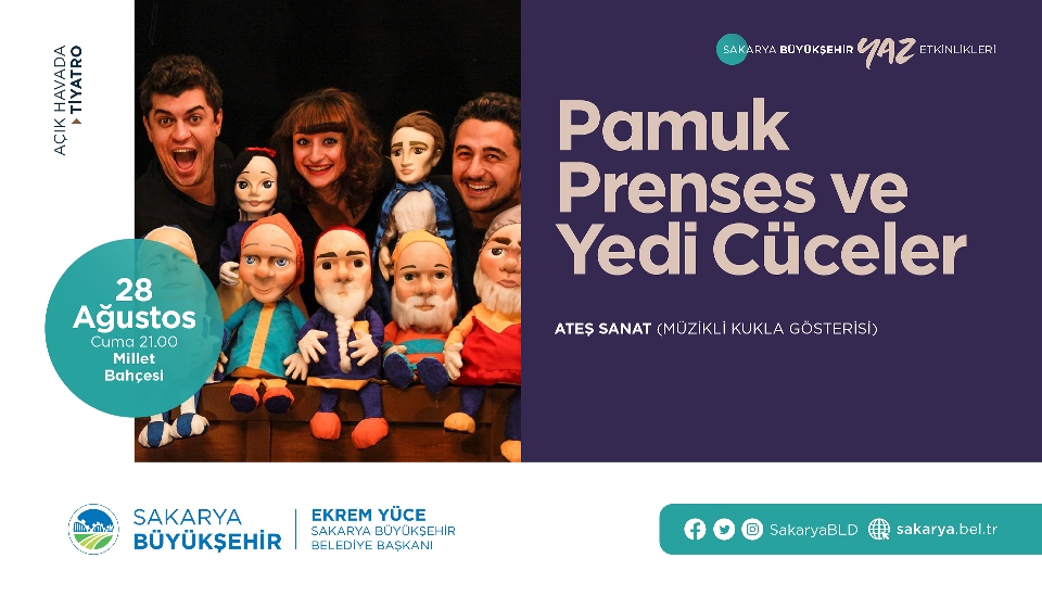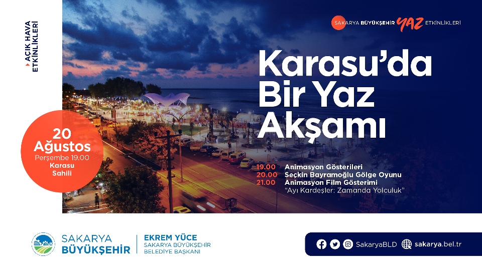 Sakarya Büyükşehir Belediyesi şehrin kültür sanat ajandasına yeni bir etkinlik takvimi ile renk katacak. Kültür ve Sosyal İşler Dairesi Başkanlığı tarafından hazırlanan yaz etkinliklerinde Ağustos takvimi belirlendi. Açık havada tiyatro gösterimlerinden sinema günlerine, çocuk etkinliklerinden sergilere birçok etkinlik kültür sanat şehri Sakarya’da vatandaşların beğenisine sunulacak. Etkinliklerin tamamı açık havada gerçekleştirilecek olmasının yanı sıra maske, mesafe ve hijyen kuralları uygulanacak ve etkinliklere sınırlı sayıda katılımcı kabul edilecek.