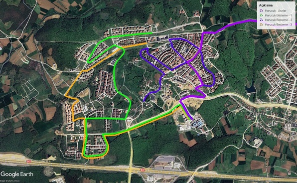 Korucuk 1 (Yeşil Çizgili Güzergâh): Korucuk Park, Toki C Blokları, Dorukkent 1739 ve