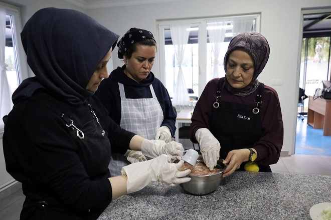sunuluyor. 100’ü aşkın kursiyer, mutfakta üretmenin keyfini yaşarken aynı zamanda
