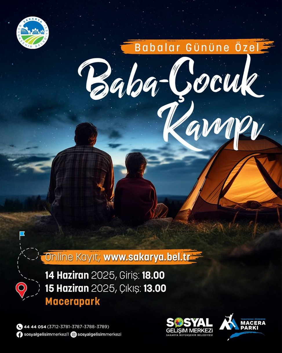 Sakarya Büyükşehir Belediyesi, hayatın her alanında vatandaşların yanında olmaya devam ediyor. Babalar Günü’ne özel olarak birbirinden renkli ve anlamlı etkinliklerin yer alacağı ‘Baba – Çocuk Kampı’ için kayıtlar başladı. Aile bağlarını güçlendirmeyi, farklı kuşakları bir araya getirmeyi hedefleyen kamp, baba ve çocuklarına eğlenceli bir hafta sonu fırsatı sunuyor.