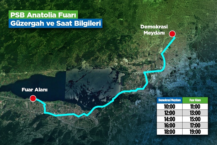 Kurumdan yapılan açıklamada, “Ücretsiz olarak hizmet verecek araçlarımız Demokrasi Meydanı’ndan; 10.00, 12.00, 14.00, 16.00 ve 18.00 Fuar Alanından ise; 11.00, 13.00, 15.00, 17.00 ve 19.00 saatlerinde hareket edecektir. Bu vesile ile PSB Anatolia 2025 Uluslararası Peyzaj, Süs bitkileri, Bahçe Sanatları ve Ekipmanları Fuarı’nın şimdiden ülkemize ve şehrimize hayırlı olmasını diliyoruz” denildi.