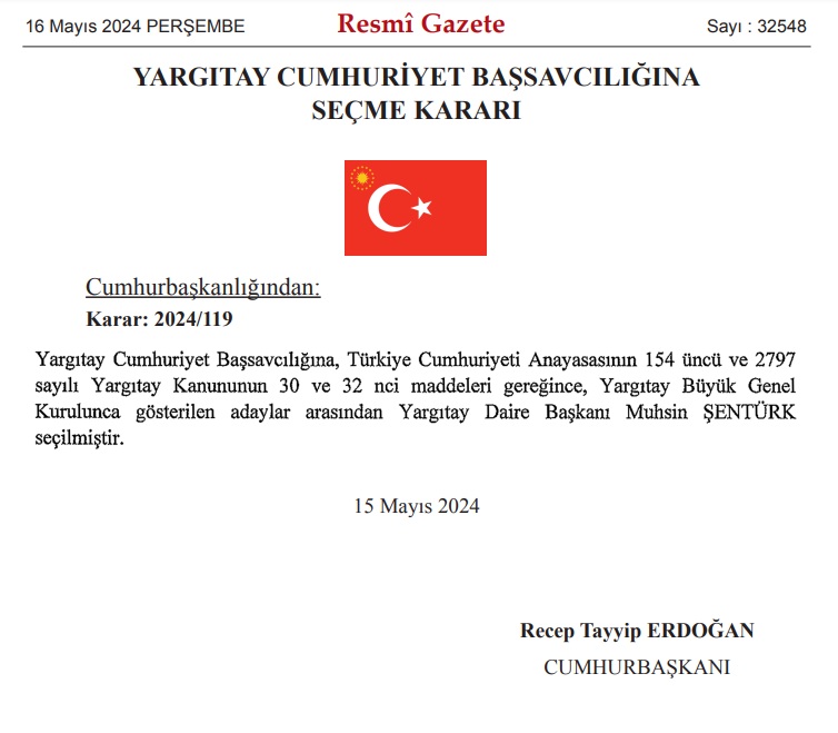 Yargıtay Cumhuriyet Başsavcılığı’na Muhsin Şentürk seçildi