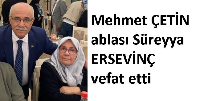 Emekli- Sen Sakarya Şube Başkanı Mehmet ÇETİN ablası Süreyya ERSEVİNÇ vefat etti