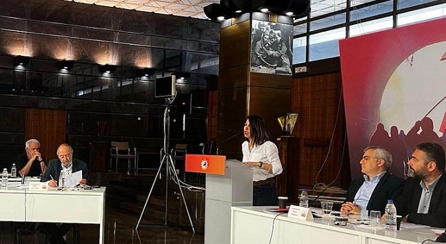 Kutsumbas’ın sunumunun ardından partilerin her birinin kendi ülkelerindeki deneyimleri paylaştığı sunumlar gerçekleştirildi. Avrupa Birliği’nin emperyalist karakteri, güncel savaşlar, kazanılmış haklara yönelik saldırılar ve komünistlerin işçi sınıfı hareketliliklerindeki rolü üzerine hazırlanan katkıların sunulduğu oturumda TKP adına Parti Meclisi üyesi Gözde Kök söz aldı. Sunumda TKP’nin Avrupa Birliği ile ilgili pozisyonu ve Türkiye’nin Avrupa Birliği serüveni hakkında yapılan özetin ardından Türkiye işçi sınıfının güncel durumu, mücadele deneyimi ve komünistlerin çalışmalarıyla ilgili bilgi verildi.