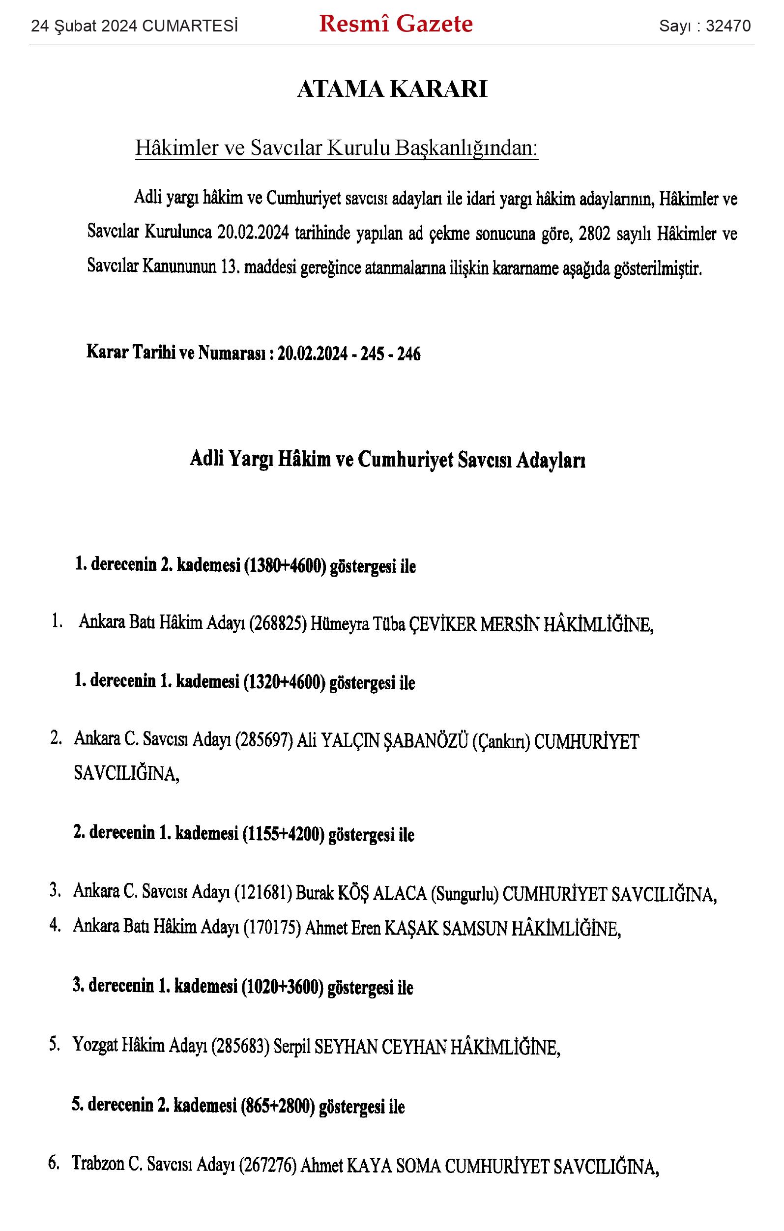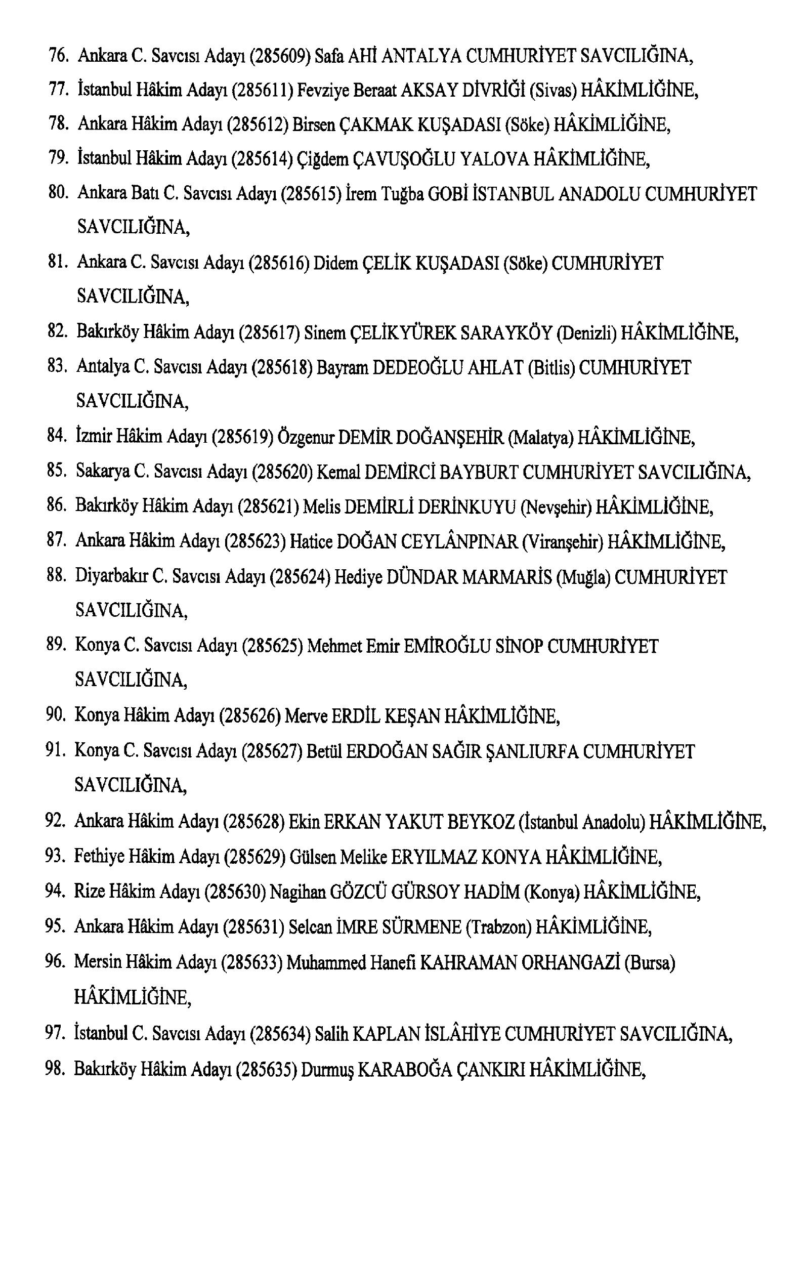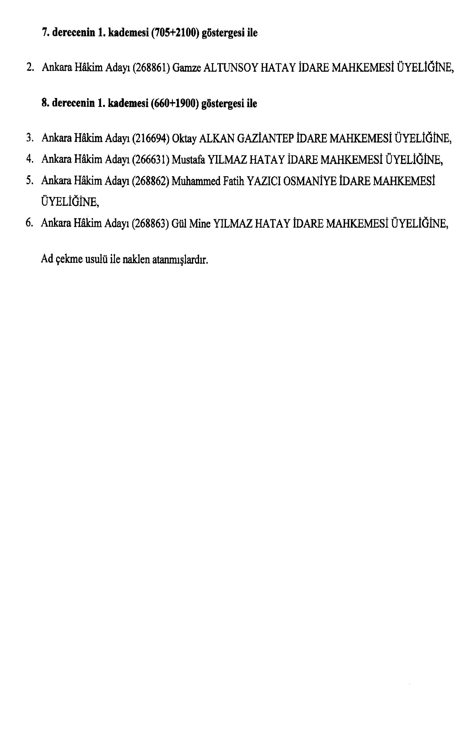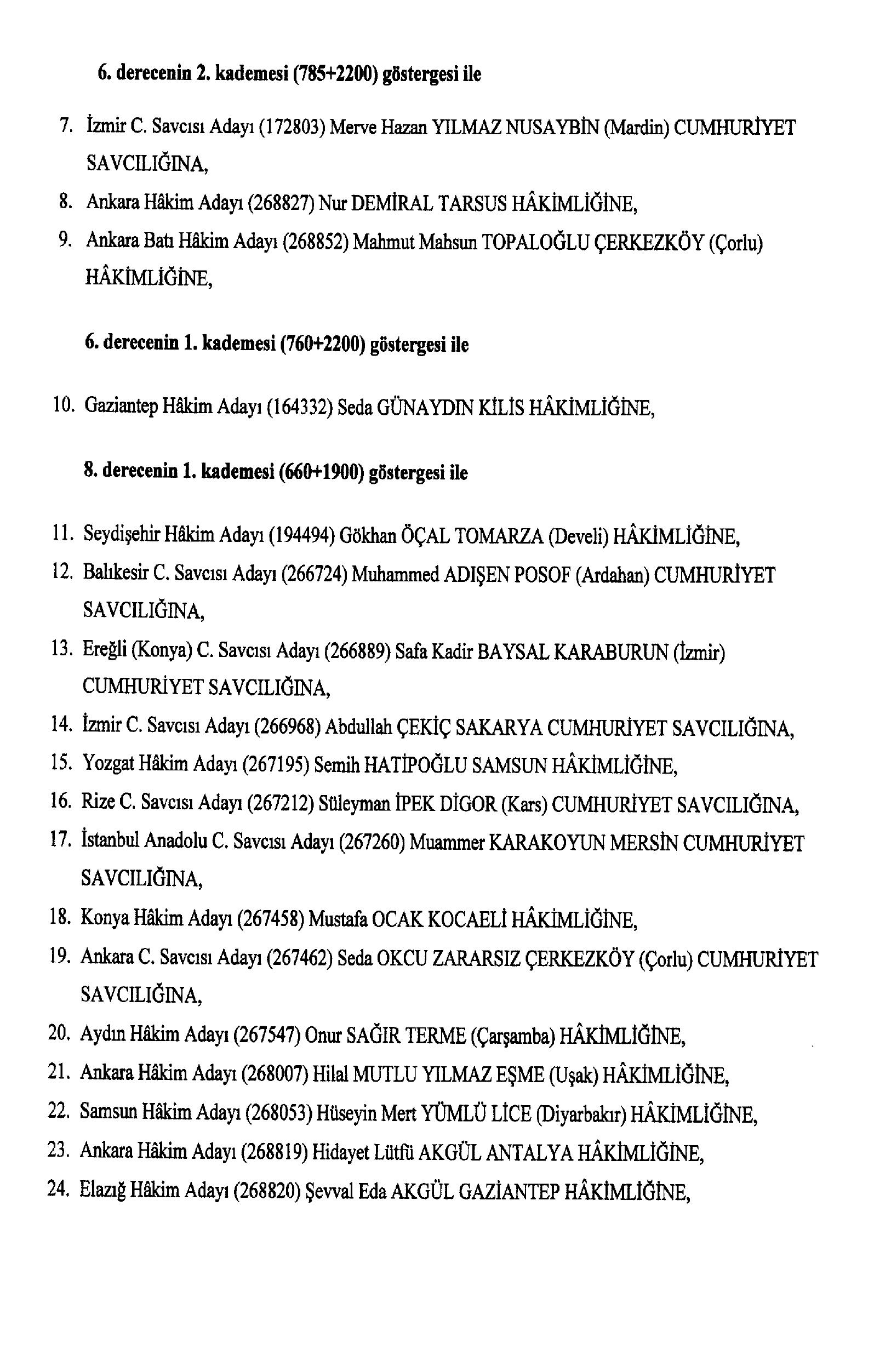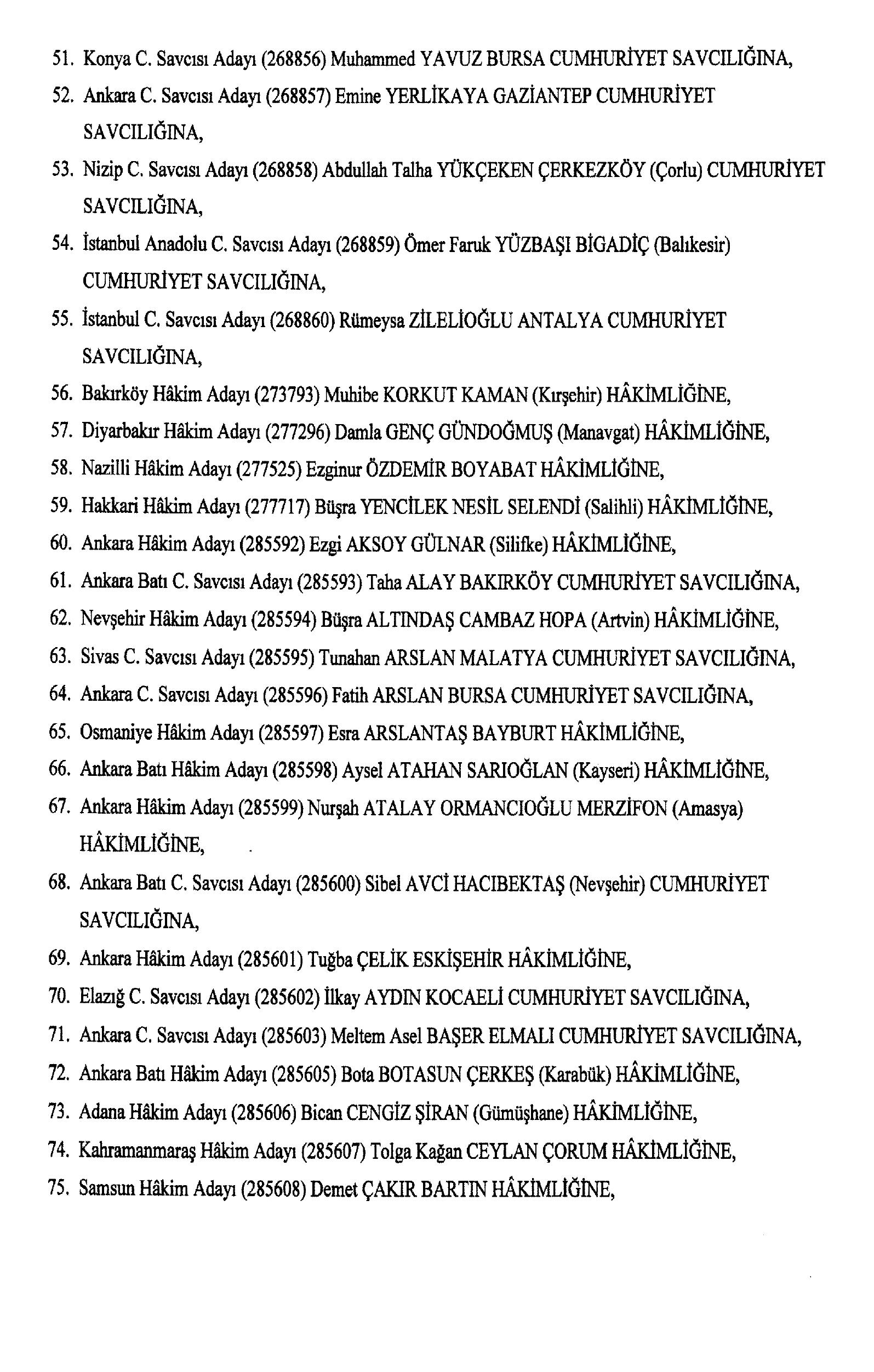 Söz konusu atamalar, 2802 sayılı Hakimler ve Savcılar Kanunu’nun 13. maddesi gereğince yapıldı.