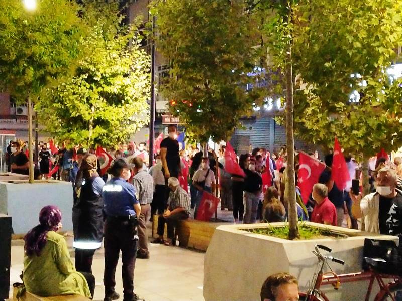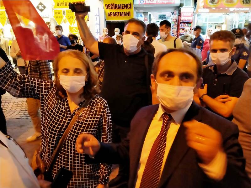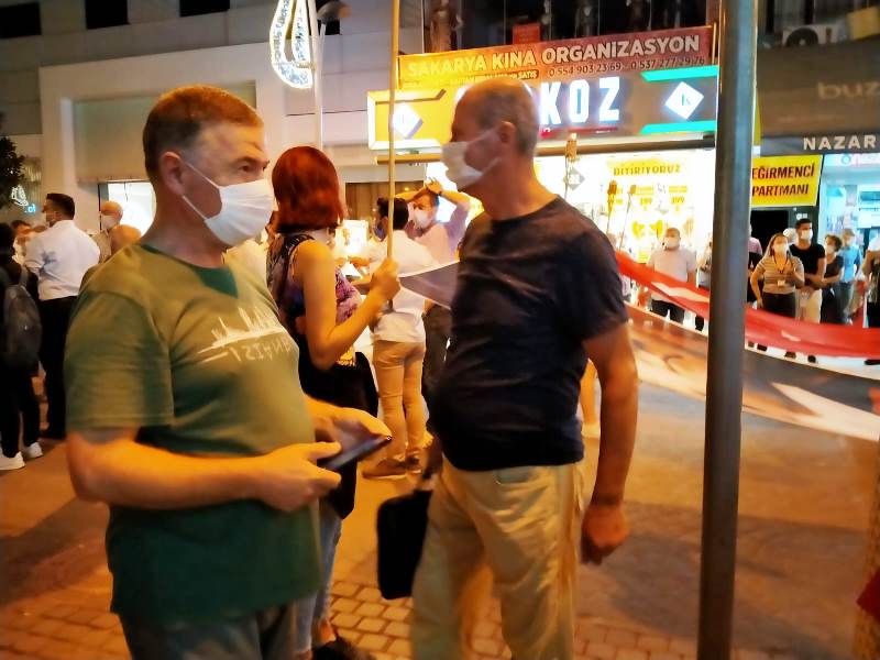 Kalabalık polis barikatına takılmış, polis ve partili grup yaklaşık 30 dakika karşılıklı olarak beklemişti. CHP İl Başkanı Ecevit Keleş’in Sakarya Emniyet Müdürü Fatih Kaya ile görüşmesinden sonra barikat kaldırıldı ve yaklaşık 100 kişilik grup “Mustafa Kemal’in askerleriyiz” sloganları atıp ellerindeki Türk Bayraklarını sallayarak caddenin başına kadar yürüdü.