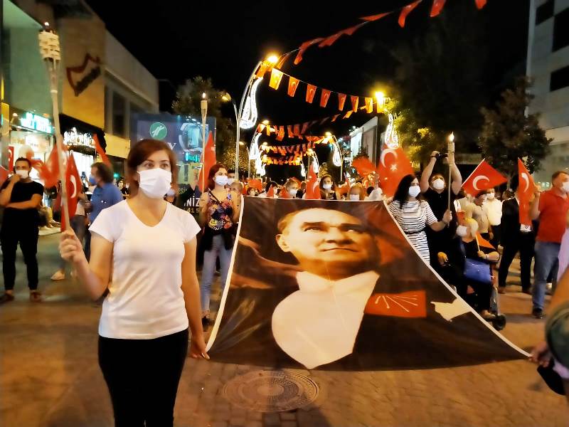 CHP Sakarya Zafer Bayramında Çark Caddesinde Fener Alayı düzenledi