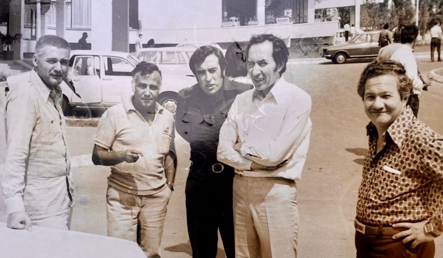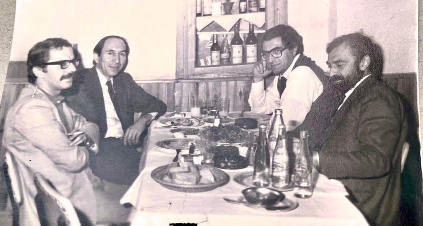 Tarih 1975 Ekim ayı sonları, yer Bükreş: CHP lideri Ecevit’in Romanya gezisini izleyen gazeteciler (soldan sağa) Mehmet Ali Kışlalı, Cüneyt Arcayürek, Ergin Konuksever, Altan Öymen, Kurtul Altuğ…