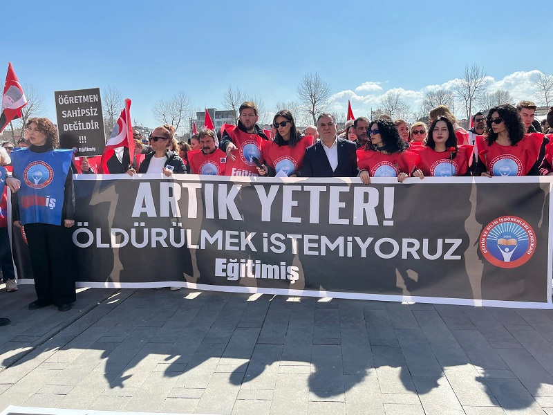 Ve buradan bir kez daha ilan ediyoruz: Öğrencilerimizin ve eğitim emekçilerinin can güvenliği sağlanıncaya kadar susmayacağız. Mücadele edeceğiz.