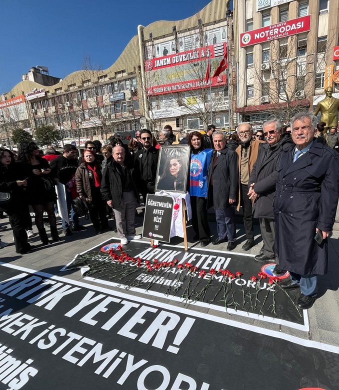 İstanbul’un Çekmeköy ilçesindeki Borsa İstanbul Mesleki ve Teknik Anadolu Lisesi’nde meydana gelen bıçaklı saldırıda öğretmen Fatma Nur Çelik yaşamını yitirdi, iki öğretmen ve bir öğrenci yaralandı. Olayın ardından eğitim camiasından tepkiler yükseldi. Eğitm-İş Sakarya Demokrasi Meydanın’da bir araya gelerek basın açıklaması yaptı. Açıklamada sık sık “Fatma Nur öğretmen ölümsüzdür”, “Tarikatın bakanı Yusuf Tekin istifa”, “Mustafa Kemal’in öğretmeniyiz” sloganları atıldı.