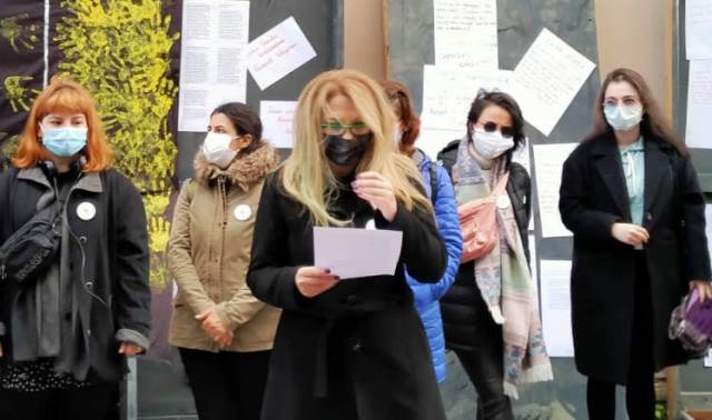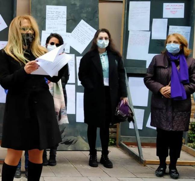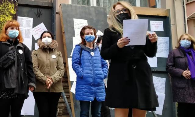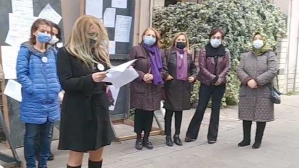 Eğitim Sen Sakarya Şubesi Kadın Sekreteri Yasemin Hacıeyüpoğlu, 25 Kasım Uluslararası Kadına Yönelik Şiddetle Mücadele ve Dayanışma Günü dolayısıyla, Eğitim Sen Şube binası önünde basın açıklaması yaptı.