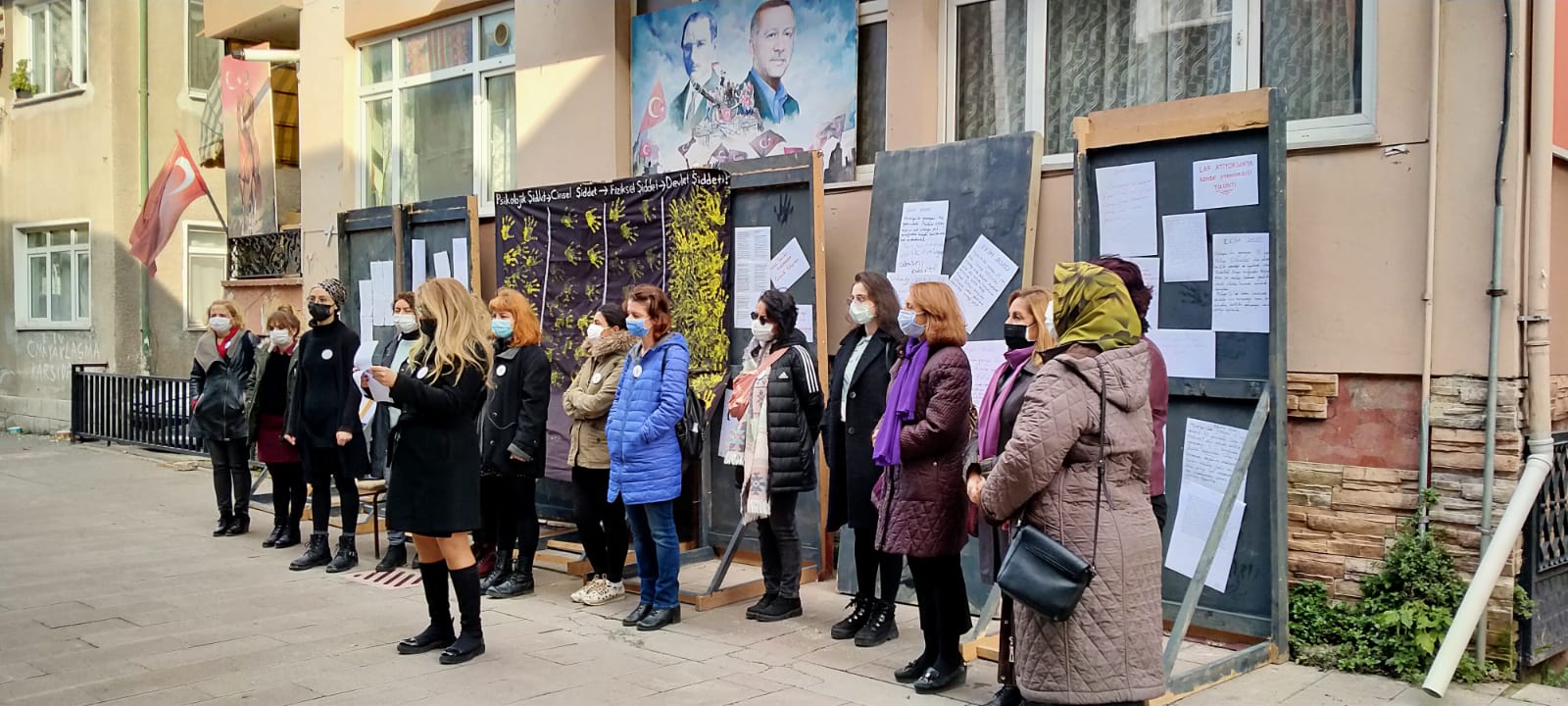 Eğitim Sen Sakarya Şubesi Kadın Sekreteri Yasemin Hacıeyüpoğlu, 25 Kasım Uluslararası Kadına Yönelik Şiddetle Mücadele ve Dayanışma Günü dolayısıyla, Eğitim Sen Şube binası önünde basın açıklaması yaptı.