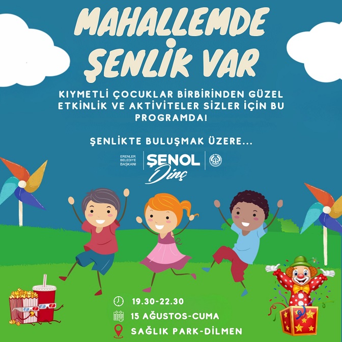 Ağustos Cuma Günü Sağlık Parkta 19.30 – 22.30 saatleri arasında gerçekleşecek olan ‘Mahallemde Şenlik