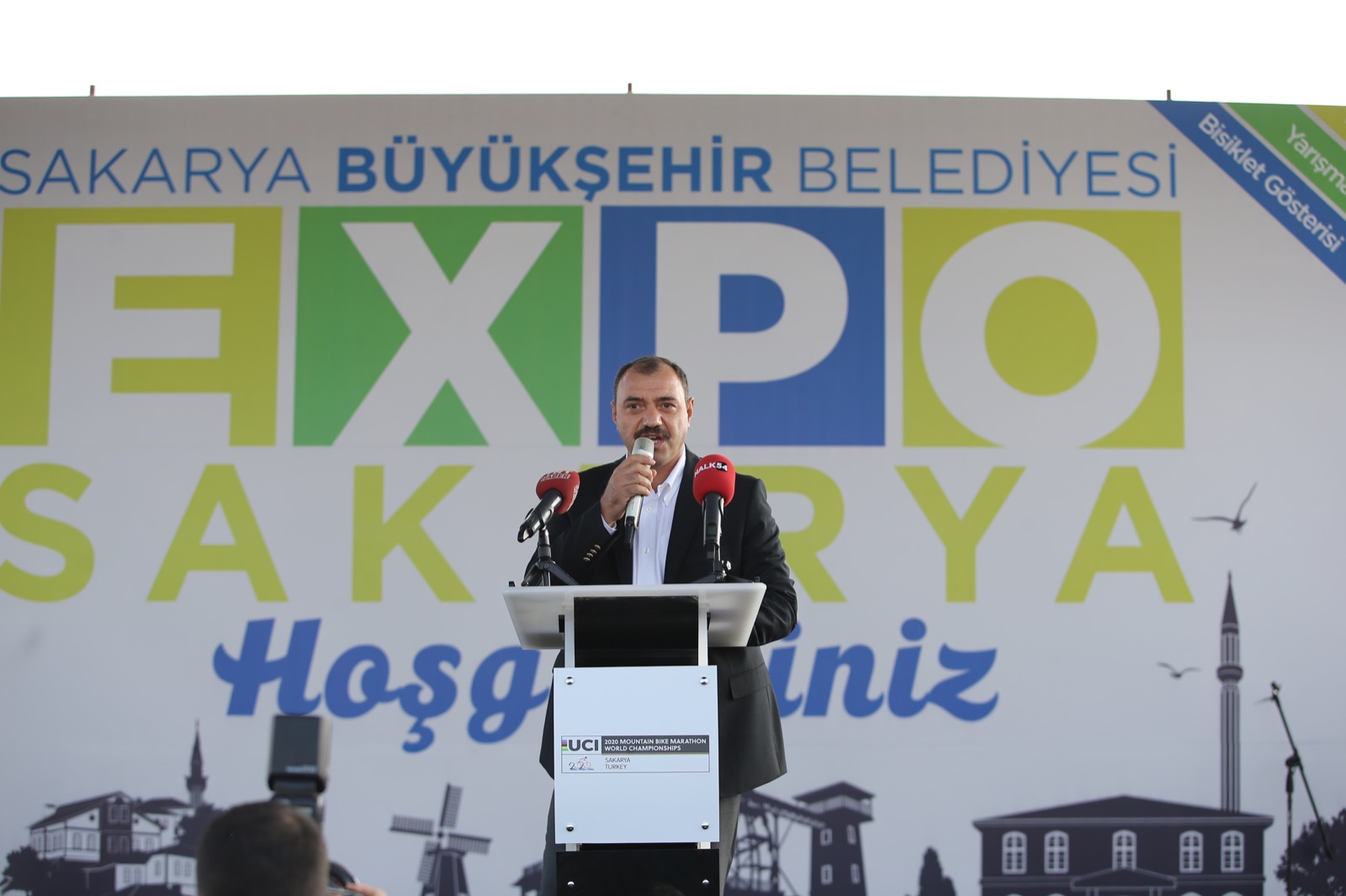 Sakarya Büyükşehir Belediye Başkanı Ekrem Yüce, Ayçiçeği Bisiklet Vadisi’nin hemen yanında bulunan alanda hazırlanan Sakarya EXPO 2020’nin açılışına katıldı. 2020 Dünya Dağ Bisikleti Maraton Şampiyonasına ev sahipliği yapan Sakarya, EXPO sayesinde yurt içinden ve yurt dışından gelen misafirlere faaliyetlerini ve tanıtımlarını sunacak. Programa Başkan Yüce’nin yanı sıra Vali Çetin Oktay Kaldırım, Cumhuriyet Başsavcısı Lütfi Dursun, AK Parti İl Başkanı Yunus Tever, Spor İl Müdürü Arif Özsoy, İlçe Belediye Başkanları, STK temsilcileri, Büyükşehir bürokratları, basın mensupları ve vatandaşlar katıldı. Program sonunda kurdele kesilerek EXPO 2020’nin açılışı gerçekleşti.