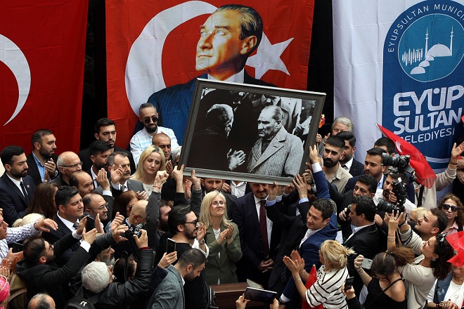 Konuşma sonrası Eyüpsultan Belediye Başkanı Dr. Mithat Bülent Özmen’e Yeşilpınar Okul Sorumluları tarafından, İstanbul Büyükşehir Belediye Başkanı Ekrem İmamoğlu’nun makam odasına astığı Atatürk portresinin benzeri hediye edildi.