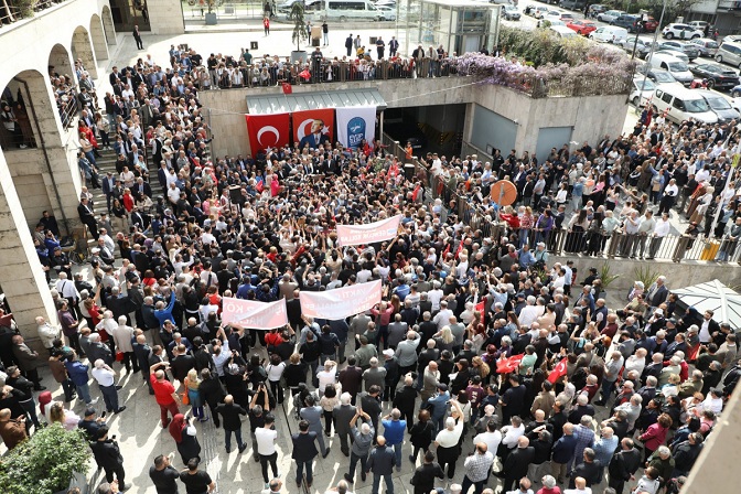 Eyüpsultan Belediyesi önünde coşkulu kalabalık