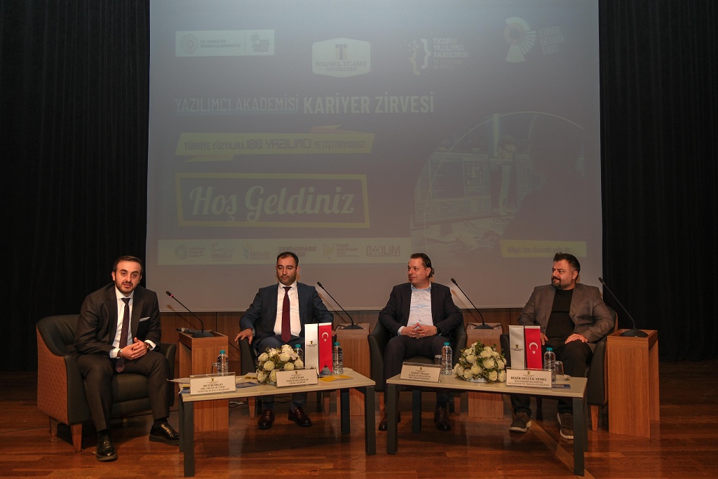 İstanbul Ticaret Üniversitesi, geleceğin yazılımcılarını sektöre kazandırmak amacıyla İstanbul Kalkınma Ajansı’nın desteğiyle Ticar@ Yazılımcı Akademisi ve İstihdam Merkezi Projesi’ni hayata geçirdi. Sanayi ve Teknoloji Bakanlığı’nın Milli Teknoloji Hamlesi Programı çerçevesinde üniversitemizin Teknoloji Transfer Ofisi’nin bir projesi olarak İTO, Teknopark İstanbul, Esenler Belediyesi, İktisadi Araştırmalar Vakfı, BeTa İlim Derneği ortaklığında yürütülen projede, eğitim ve kamp süreçlerini başarıyla tamamlayan ve proje kapsamında en az yüzde 60’ı istihdam edilecek 118 yazılımcı adayı; İstanbul Ticaret Üniversitesi Sütlüce Yerleşkesi’nde düzenlenen Kariyer Zirvesi’nde projelerini yazılım ve teknoloji otoritelerinin beğenisine sunarak sektöre ilk adımlarını attı. Düzenlenen programa İstanbul Ticaret Odası, Proje ve İş Geliştirme Müdürlüğünden Ertan Ünal, Bilgiyi Ticarileştirme Merkezi (BTM) Genel Müdürü İbrahim Elbaşı, İstanbul Ticaret Üniversitesi Rektör Yardımcısı Prof. Dr. Hanifi Parlar, TÜYAFED Başkanı Mustafa Çalış, İstanbul Teknopark İstanbul Kuluçka Merkezi Takım Lideri Özkan Can, akademisyenler ve akademiden mezun olan öğrenciler katıldı. ARGE Merkezi firmalar da istihdam için etkinlik önünde stant açtılar.