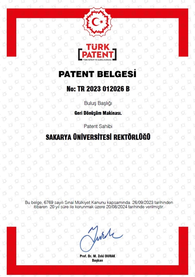 Sakarya Üniversitesi’nin ‘Geri Dönüşüm Makinası’ patent başvurusu tescil