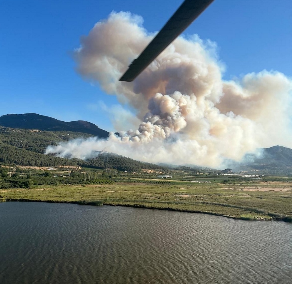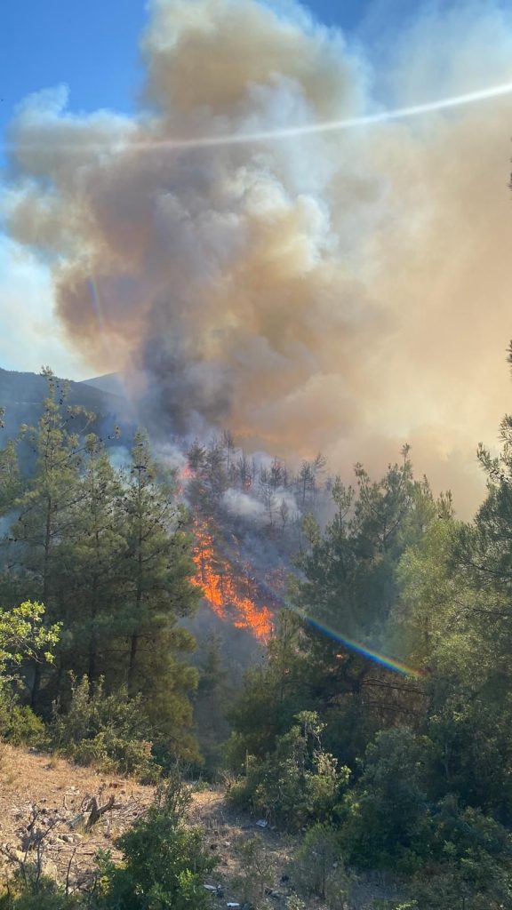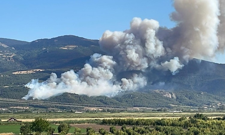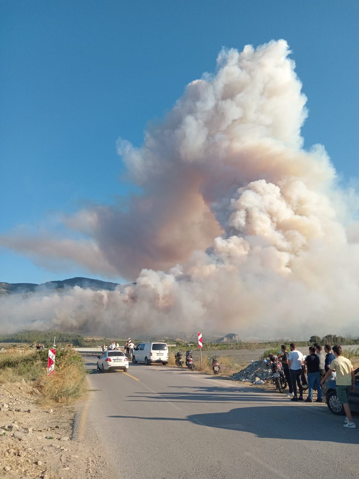 Ekipler, vatandaşların da desteğiyle yangını söndürmek için çalışmalarını sürdürüyor.