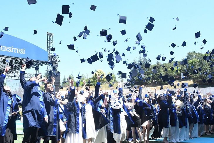 Tören, öğrencilerin mezuniyet yemininin ardından keplerini fırlatması ile sona erdi.