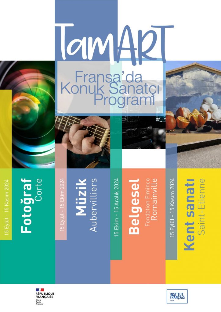 Fransa’daki sanat kurumları ile işbirliği içinde gerçekleştirilecek TamART, fotoğraf, müzik, belgesel yapımcılığı ve kent sanatı alanlarında genç Türk sanatçılarına yönelik ve iki ay süreli beş sanat rezidansı sunuyor. Institut français Türkiye, konuk sanatçı programı TamART ile sanatsal yaratımı ve çeşitliliği desteklemeyi amaçlıyor.