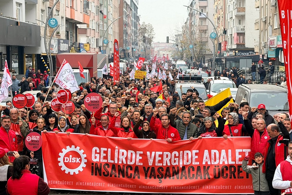 2026 yılı asgari ücretinin belirlenmesine sayılı günler kala, DİSK’in çağrısıyla Gebze’de toplanan binlerce işçi ‘İnsanca yaşanacak ücret’ talep etti. Sermaye bütçesine ve asgari ücret zammının yüzde 25’le sınırlı tutulmak istenmesine tepki gösteren işçiler, Türk-İş ve Hak-İş bürokrasisinin yakınmakla sınırlı kalan tutumuna ve Bakan Işıkhan’ın göstermelik konfederasyon ziyaretlerine karşı gerçek asgari ücret masasını meydana kurdu, grev sloganları attı