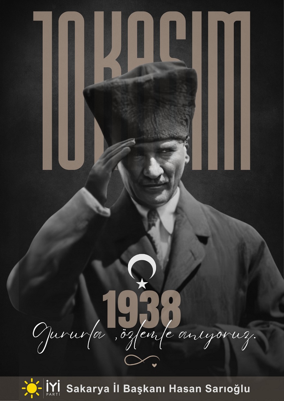 İYİ Parti Sakarya İl Başkanı Hasan Sarıoğlu Ulu Önder Mustafa Kemal Atatürk’ün vefatının dönümü nedeniyle bir anma mesajı yayımladı.