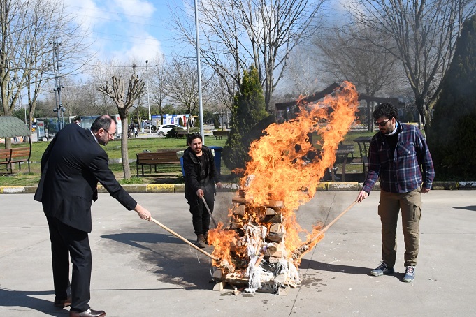 sunduğu ve şiirlerin seslendirildiği etkinlikte, katılımcılar yakılan nevruz ateşinden atladı.