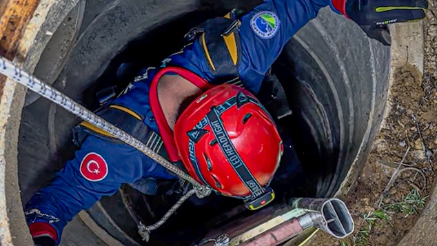Büyükşehir Belediyesi İtfaiyesi, Kocaali’de 11 metre derinliğindeki rögar çukuruna