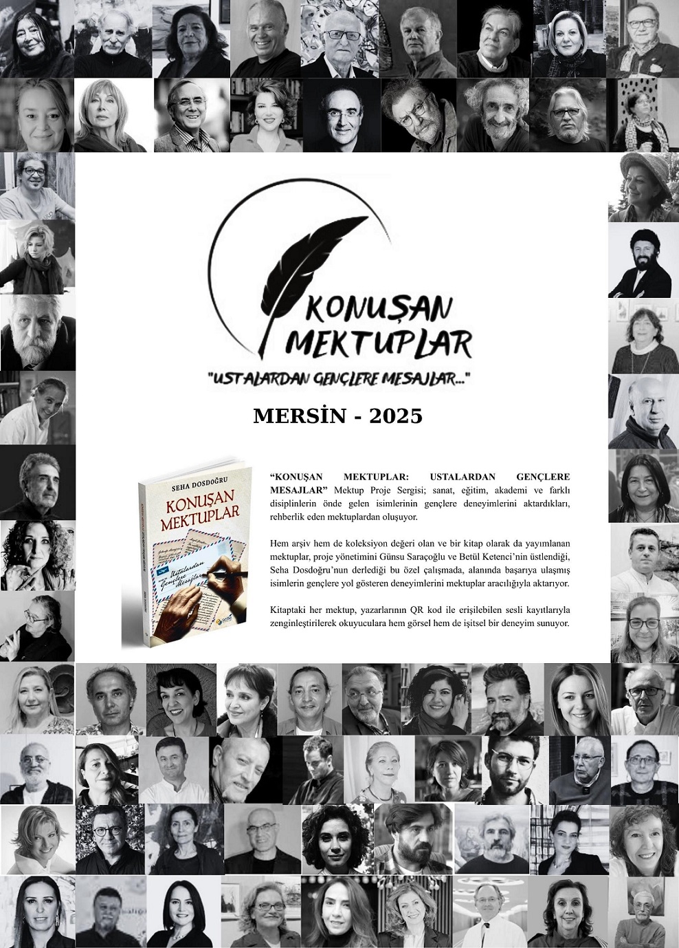 Proje yönetimini Günsu Saraçoğlu ve Betül Ketenci’nin üstlendiği, Seha Dosdoğru’nun derlediği “Konuşan Mektuplar: Ustalardan Gençlere Mesajlar”, farklı disiplinlerde üretim yapan ve alanlarında iz bırakmış isimlerin genç kuşaklara hitaben kaleme aldıkları mektupları bir araya getiriyor. Sergi, kişisel anlatılar aracılığıyla bilgi aktarımını görünür kılarken, sözlü ve yazılı hafıza arasında güçlü bir bağ kuruyor. Hem arşivsel hem de koleksiyon değeri taşıyan bu özel çalışma, sergiye eşlik eden bir kitap olarak da yayımlandı. Kitapta yer alan her mektup, yazarlarının sesli anlatımlarına QR kod aracılığıyla erişim imkânı sunarak izleyici ve okura çok katmanlı bir deneyim alanı açıyor. Yazı, ses ve görselin birlikteliğiyle mektuplar yalnızca okunmakla kalmıyor; aynı zamanda dinlenerek yeniden yorumlanıyor.