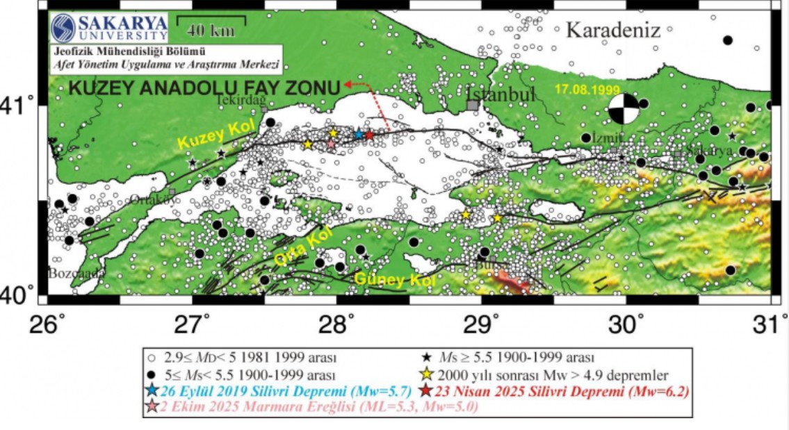 Sakarya Üniversitesi Jeofizik Mühendisliği Bölümü ile Afet Yönetim Uygulama ve Araştırma Merkezi, 2 Ekim tarihinde Marmara Ereğlisi açıklarında meydana gelen 5.0 büyüklüğündeki depremle ilgili bir değerlendirme raporu yayımladı. Sakarya Üniversitesi uzmanları, depremin Kuzey Anadolu Fay Zonu’nun (KAFZ) kuzey kolu üzerinde, Marmara Denizi altındaki Ana Marmara Fayı yakınında meydana geldiğini belirtti.