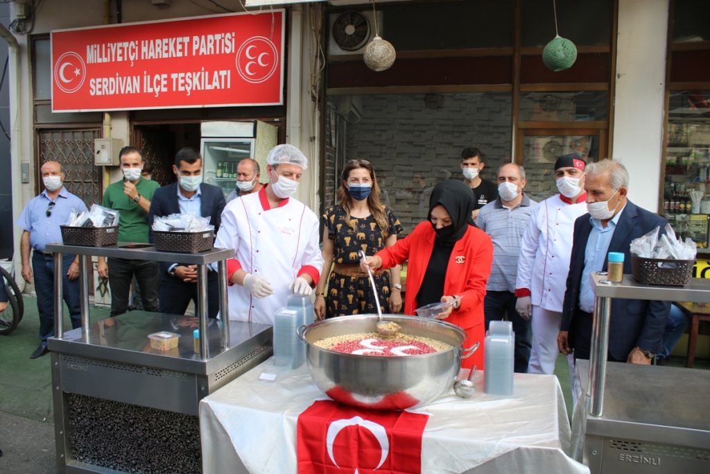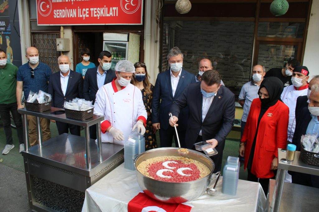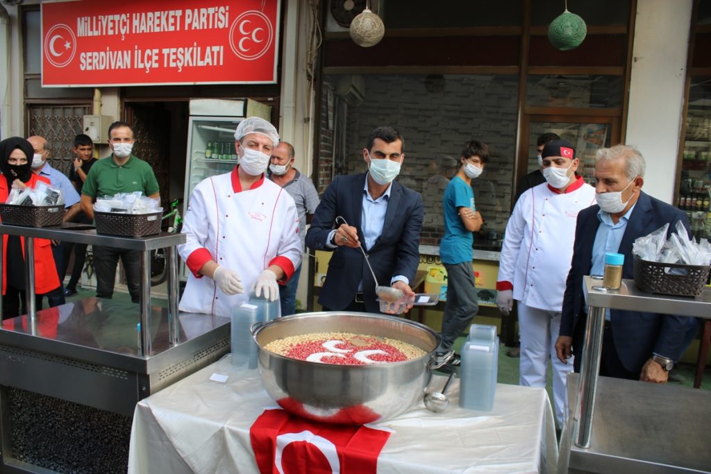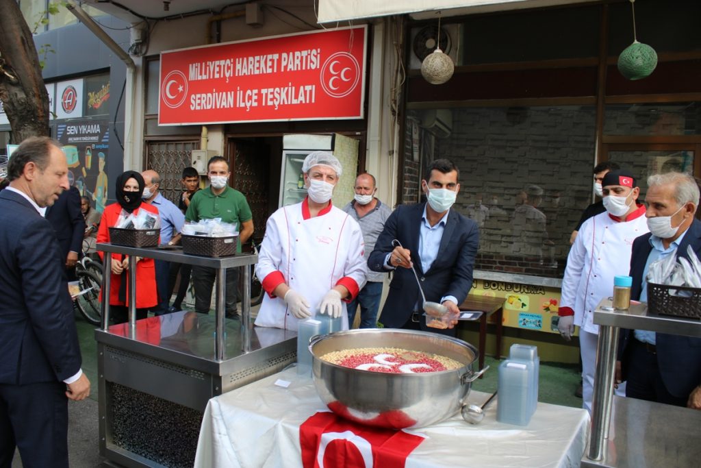 MHP Serdivan İlçe Teşkilatı; İslam ve Osmanlı geleneği olan Aşure ikramında bulundu. Pograma; MHP Grup Başkanvekili Muhammed Levent Bülbül’de katldı… Milliyetçi Hareket Partisi (MHP) Serdivan İlçe Teşkilatı önünde sosyal mesafe ve kurullara uyarak, dualar okunarak gerçekleştirilen “Geleneksel Aşure İkramı” programına; MHP Grup Başkanvekili ve Sakarya Milletvekili Muhammed Levent Bülbül, MHP Sakarya İl Başkanı Ahmet Ziya Akar, Ülkü Ocakları Sakarya İl Başkanı Soyhan Sofuoğlu, MHP İl Kadın Kolları Başkanı Elif Saral Uzun; MHP Arifiye İlçe Başkanı Ferit Şekerli, Kocaali İlçe Başkanı Adnan Arar, Erenler İlçe Başkanı Ünal Canay; MHP Meclis Üyeleri ve ilçe yönetimi katıldı. MHP Serdivan İlçe Başkanı Yaşar Kara; İslam ve Osmanlı geleneği olan Aşure ikramlarına teşrif eden herkese teşekkür ederken, desteklerinden dolayı da MHP Serdivan Kadın Kolları Başkan Yardımcısı Elif Feratoğlu’na ayrıca teşekkür etti. Başkan Yaşar Kara; Genel Başkanları Devlet Bahçeli’nin çizdiği yolda, siyasi çalışmalarını sürdürdüklerini belirterek; Milliyetçi Hareket Partisi’ni ilçeleri Serdivan’da birinci parti yapmak için gece gündüz, yağmur çamur demeden çalışmaya devam edeceklerini söyledi. Levent CANDAN