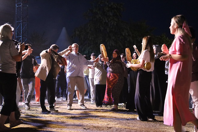önüne serdi. Gece, halk oyunları gösterileriyle sona erdi.