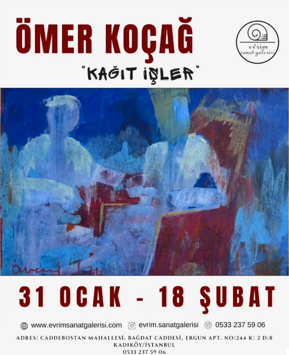 Sanatseverler, Ömer Koçağ’ın yeni dönem üretimlerini bir arada görme fırsatı sunan “Kağıt İşler” sergisini, 18 Şubat 2026 tarihine kadar Evrim Sanat Galerisi’nde ziyaret edebilirler.
