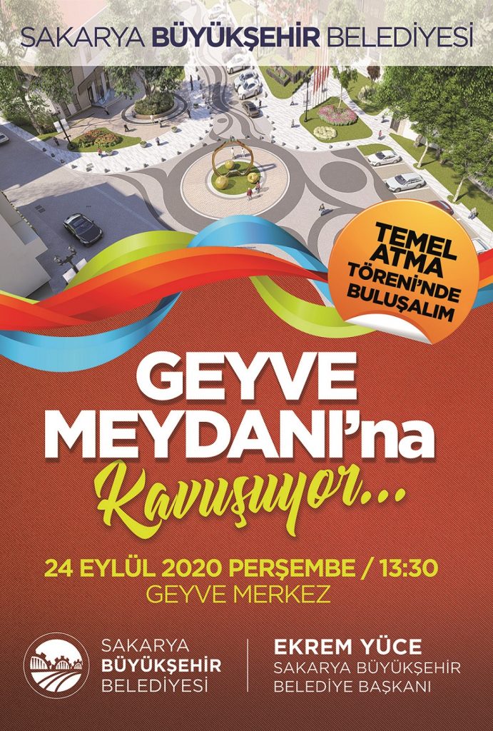 Geyve Meydanı yenileme projesinin 24 Eylül Perşembe günü temelinin atılacağını belirten Başkan Ekrem Yüce, “Geyve’nin tarihi dokusuna uygun örnek bir meydan çalışmasını hayata geçireceğiz. Yeşil alanları, şehir mobilyaları, mimari ve estetik uygulamaları ile 7/24 yaşayan bir meydan olacak. Hayırlı olsun” dedi.