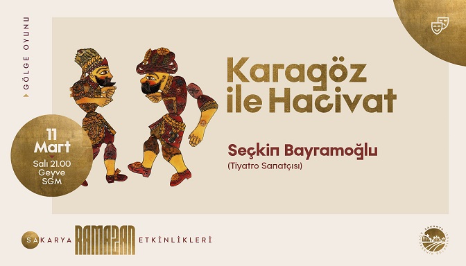Tasavvuf musikisi dinletisinin ardından saat 21.00’da tiyatro sanatçısı Seçkin Bayramoğlu’nun yazıp yönettiği Karagöz ve Hacivat gölge oyunu izleyiciyle buluşacak.
