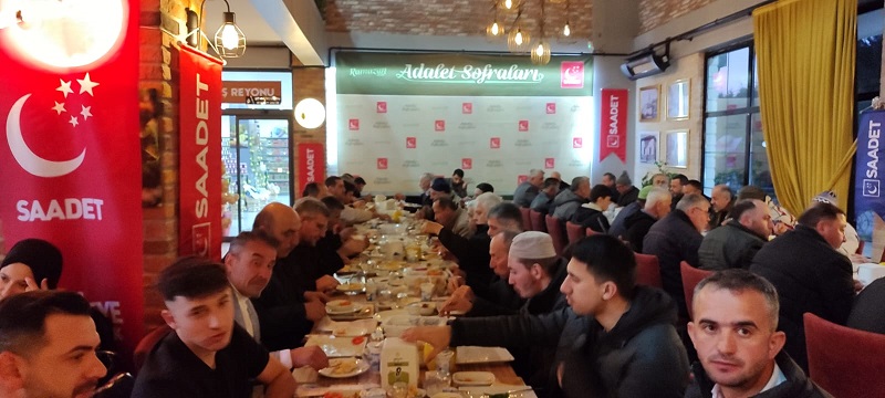 Saadet Partisi Sakarya İl Teşkilatı, Ramazan ayı boyunca Genel Merkez tarafından belirlenen “Adalet Sofraları” kapsamında Sakarya’nın farklı ilçelerinde iftar programları düzenleyerek toplumun farklı kesimlerini aynı sofrada buluşturdu.