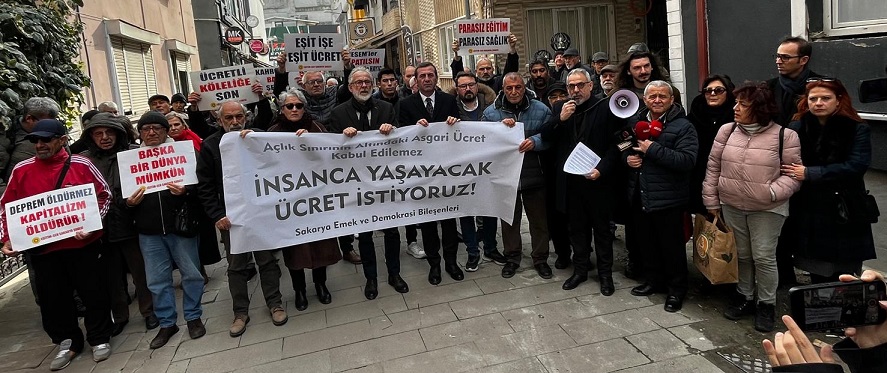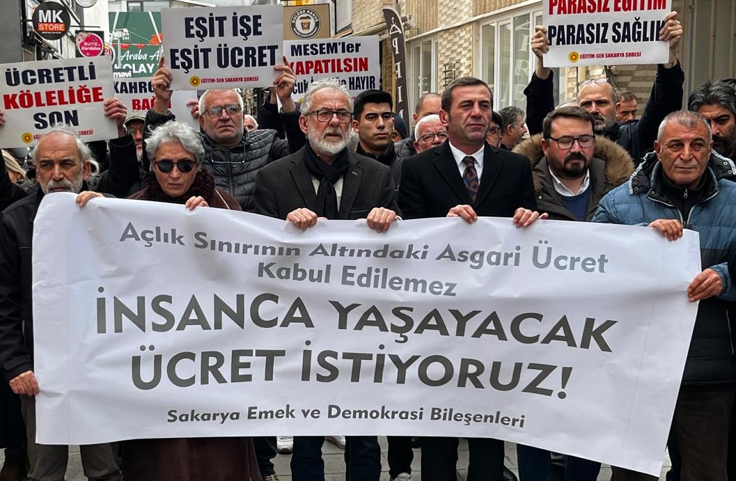 2026 yılı asgari ücretinin açıklanmasının ardından Sakarya Emek ve Demokrasi Bileşenleri, Eğitim-Sen Sakarya Şubesi hizmet binası önünde bir araya gelerek basın açıklaması gerçekleştirdi. Açıklamaya CHP Sakarya İl Başkanı Oğuz Can Curoğlu, CHP ilçe yöneticileri ve partililer de katıldı.